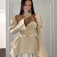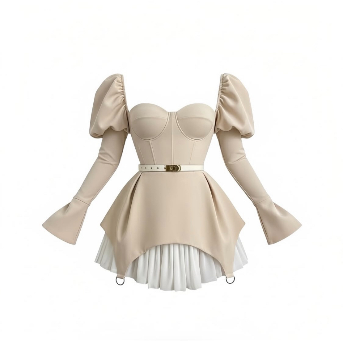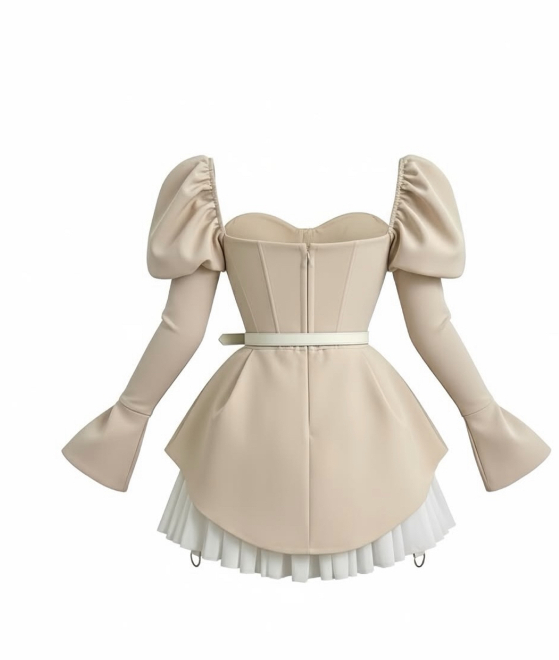 "Beige Diva" – Рокля с паднало рамо и разкроена пола